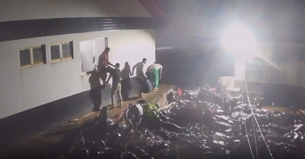 A fuga dos presos ocorreu na madrugada de sábado (7), quando os quatro detentos conseguiram serrar as grades da cela e acessar uma janela que leva ao pátio interno da delegacia. A ação ousada foi registrada por câmeras de segurança instaladas no local. Durante a fuga, os foragidos teriam levado uma mochila que continha armas e drogas que haviam sido apreendidas pela polícia.